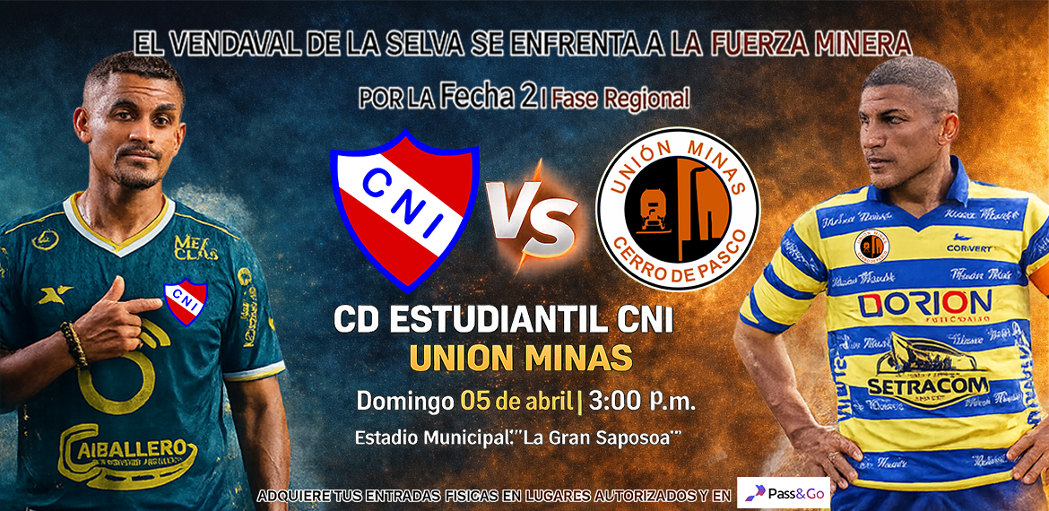 Este domingo 5 de abril a las 3:00 p. m., la emoción del fútbol profesional se vive con fuerza en el Estadio Municipal El Gran Saposoa, donde el histórico CNI – El Vendaval de la Selva enfrentará a Unión Minas en un duelo que promete intensidad de principio a fin.